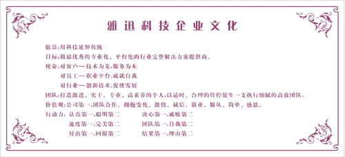 廣州雅迅科技有限公司創(chuàng)立于2003年,積累了多年的為服裝、箱包、手袋等“軟性行業(yè)”提供高科技技術(shù)服務(wù)的經(jīng)驗,是一個集研發(fā)、銷售、服務(wù)為一體的高科技企業(yè),為行業(yè)提供全方面的先進生產(chǎn)及管理的一體化解決方案。