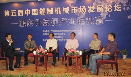 嘉賓:西安標準工業(yè)股份有限公司副總經(jīng)理朱寅、中捷縫紉機股份有限公司副總經(jīng)理章志友、義烏市東方縫紉設(shè)備有限公司常務副總經(jīng)理陳竹貴、南京裁圣縫紉設(shè)備有限公司董事長楊明才、溫州市服裝商會秘書長王心阜。