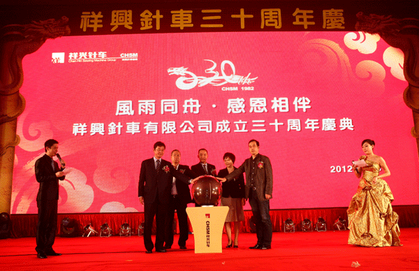 一場氣勢磅礴的擊鼓表演拉開了祥興三十周年慶典的序幕。晚會首先由祥興公司董事長梁佛祥致辭,梁董簡要回顧了祥興三十年來所走的歷程以及祥興的企業(yè)文化和經(jīng)營理念。他在講話中提到:“三十年來祥興一直堅持高端化發(fā)展,致力于提升客戶生產(chǎn)效能、提高客戶生產(chǎn)力,更注重行業(yè)未來發(fā)展的資源投入。祥興的成功凝聚著各級領(lǐng)導(dǎo)的親切關(guān)懷,凝聚著新老客戶、供應(yīng)商、員工、媒體和朋友們的信賴與鼎力支持,謹(jǐn)此,我代表祥興針車有限公司仝人向在座各位表示最崇高的敬意和最衷心的感謝!我們感恩諸位的相伴。”