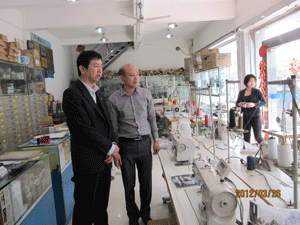 第二站來到了廣東商會(huì)秘書處,鴻昌針車行負(fù)責(zé)人陳國耀、廣州豐瑋縫紉設(shè)備有限公司總經(jīng)理李宗潤、江南兄弟針車有限公司總經(jīng)理陳耀南等廣州行家在商會(huì)秘書處與楊曉京秘書長舉行了座談。座談的主要內(nèi)容圍繞著目前經(jīng)濟(jì)環(huán)境影響下經(jīng)銷商所受的影響,了解國有品牌產(chǎn)品的銷售情況以及年后市場行情。座談會(huì)結(jié)束后,楊秘書長一行還來到了恒業(yè)機(jī)電針車城,深入到一線市場了解行業(yè)情況。