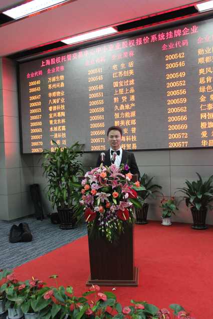 6月14日上午九點(diǎn)零八分,上海浦東張江高科技園區(qū)張江大廈。臺(tái)州市迪威展覽有限公司等26家來(lái)自全國(guó)各地的優(yōu)秀中小企業(yè)的老板、職業(yè)經(jīng)理人以及媒體記者共60余人,齊聚上海股權(quán)托管交易中心(簡(jiǎn)稱“上海股交中心”),隆重舉行上海股交中心“企業(yè)Q板專場(chǎng)掛牌儀式”。迪威公司此次掛牌的企業(yè)代碼是200928,企業(yè)簡(jiǎn)稱為“迪威展覽”。