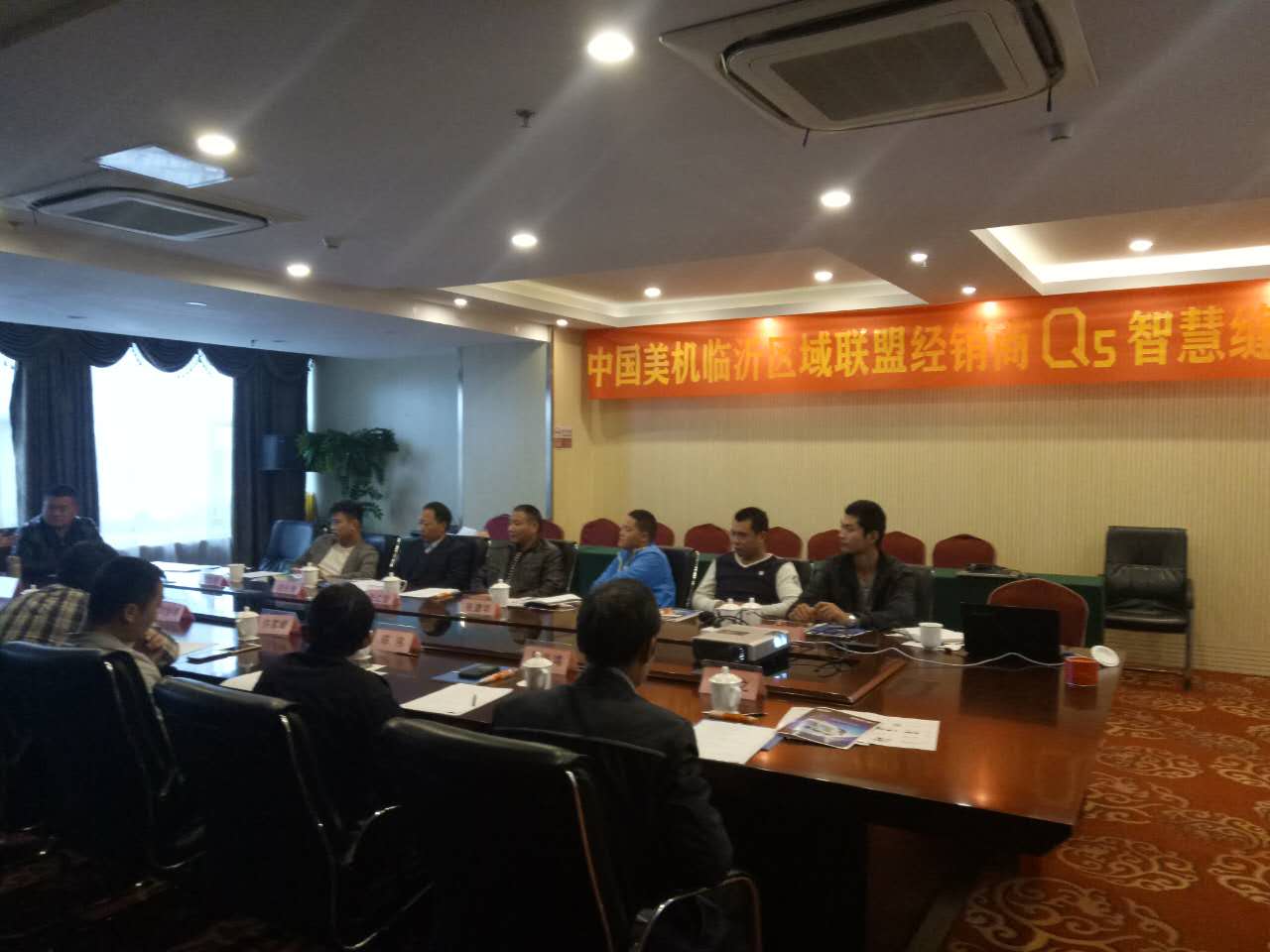 美機(jī)國(guó)內(nèi)營(yíng)銷總監(jiān)王桂榮、以恩在公司為首的十幾家聯(lián)盟經(jīng)銷商伙伴以及美機(jī)公司部分營(yíng)銷人員26日齊聚臨沂華美達(dá)大酒店,共同見(jiàn)證Q5智慧縫紉機(jī)臨沂地區(qū)榮耀首發(fā)這一歷史時(shí)刻。