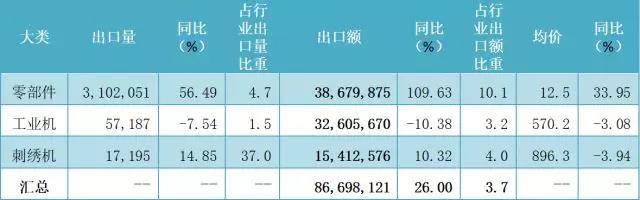 但是,當前我國縫制機械產品性價比優(yōu)勢依然突出,價格調整的彈性較大,與國際品牌的市場形成了差異化,很多縫制機械產品依然具有不可替代性,因此中國縫制機械行業(yè)對美國的出口量值可能會有小幅下降,但是對行業(yè)整體的出口形勢暫時不會有明顯影響。