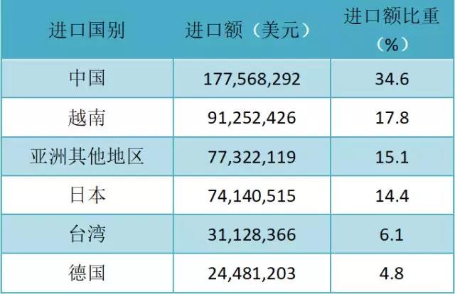另據聯合國聯合國商品貿易統(tǒng)計數據庫最新數據顯示,2016年美國累計進口縫制機械產品(不含刺繡機)5.13億美元,其中從中國進口1.78億美元,占其進口比重的34.6%。其中工業(yè)縫紉機進口45.7萬臺,進口額1.33億美元,從中國進口30.6萬臺,進口額3909萬美元,分別占其比重66.9%,29.3%,進口額僅次于日本。