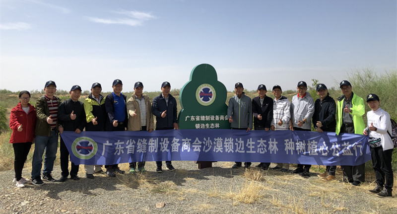 至今,商會(huì)聯(lián)合阿拉善鎖邊生態(tài)協(xié)力中心在內(nèi)蒙古阿拉善騰格里沙漠鎖邊生態(tài)公益基地捐建的“廣東省縫制設(shè)備商會(huì)沙漠鎖邊生態(tài)林”,共有83家企業(yè)或個(gè)人參與捐建,商會(huì)及17位企業(yè)家和工作人員認(rèn)種了鎖邊生態(tài)林,合計(jì)100多畝;共有100多人次參與到此項(xiàng)“種樹(shù)植心”的公益活動(dòng)中,取得了良好的生態(tài)效益和社會(huì)效益。