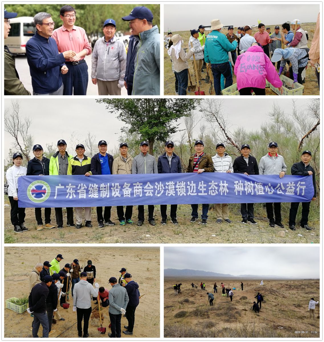5月30日-6月2日,廣東省縫制設(shè)備商會(huì)領(lǐng)導(dǎo)及部分骨干赴內(nèi)蒙古阿拉善騰格里沙漠鎖邊生態(tài)基地開(kāi)展沙漠鎖邊生態(tài)林建設(shè)。廣東省縫制設(shè)備商會(huì)主席梁佛祥、會(huì)長(zhǎng)麥德添、常務(wù)副會(huì)長(zhǎng)邵力世、副會(huì)長(zhǎng)李錦洪、李基、陳添德、黎偉彥、蘇國(guó)韜、李宗潤(rùn)、梁建生,常務(wù)理事周一帆,監(jiān)事黃英哲,副秘書(shū)長(zhǎng)黃笑妍、隨行記者《紡織制衣市場(chǎng)快訊》林志文參加了本次活動(dòng)。初夏的阿拉善沙漠迎來(lái)了寶貴的黃金雨,為商會(huì)此行所種的每棵幼小樹(shù)苗增添更多的生命力。