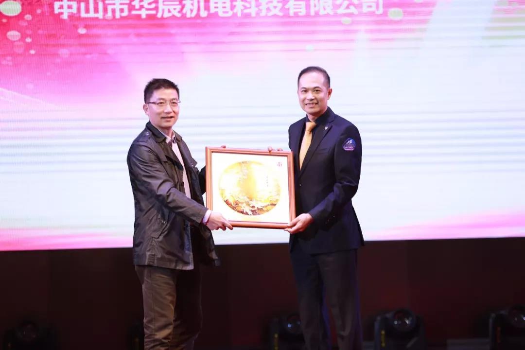 廣東省縫制設備商會常務副會長邵力世代表商會向華陽公司贈送紀念品,祝賀華陽公司二十五周年華誕。