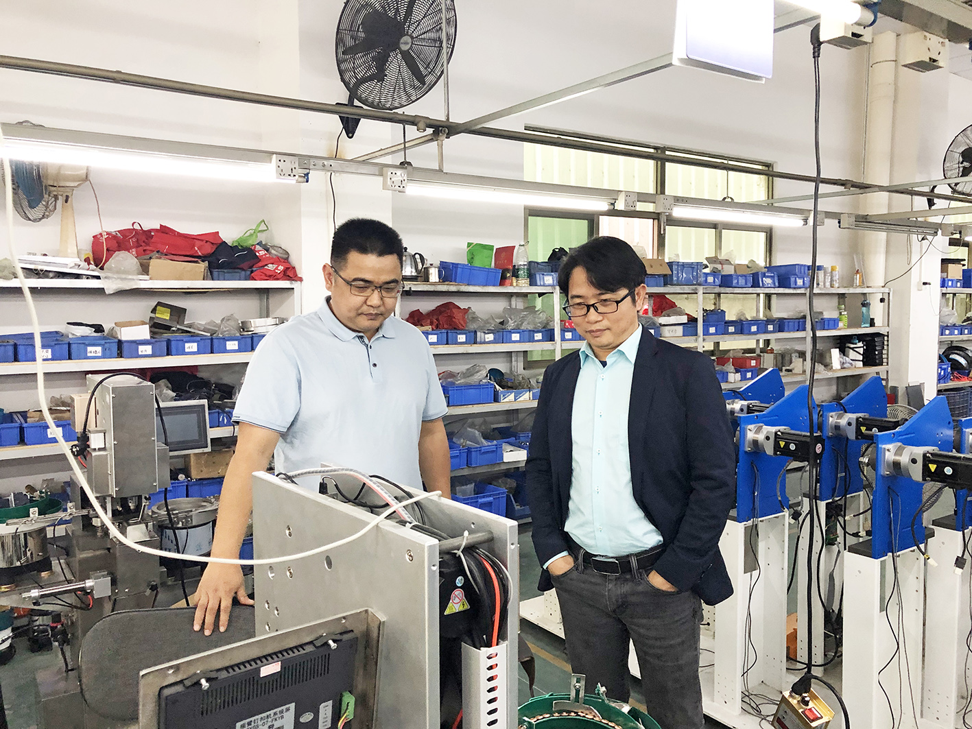 隨后,在袁總的陪同下,邵力世常務(wù)副會長來到東莞市德舜機(jī)械有限公司,與德舜公司公司總經(jīng)理謝路彬以及大舜公司總經(jīng)理謝金靈一同座談,了解自動釘鈕機(jī)的市場行情。隨后,在謝路彬總經(jīng)理和謝金靈總經(jīng)理的陪同下,大家參觀了德舜公司和大舜公司的生產(chǎn)車間,詳細(xì)了解兩家公司發(fā)展概況、生產(chǎn)經(jīng)營現(xiàn)狀、技術(shù)創(chuàng)新、市場渠道拓展等方面的舉措。