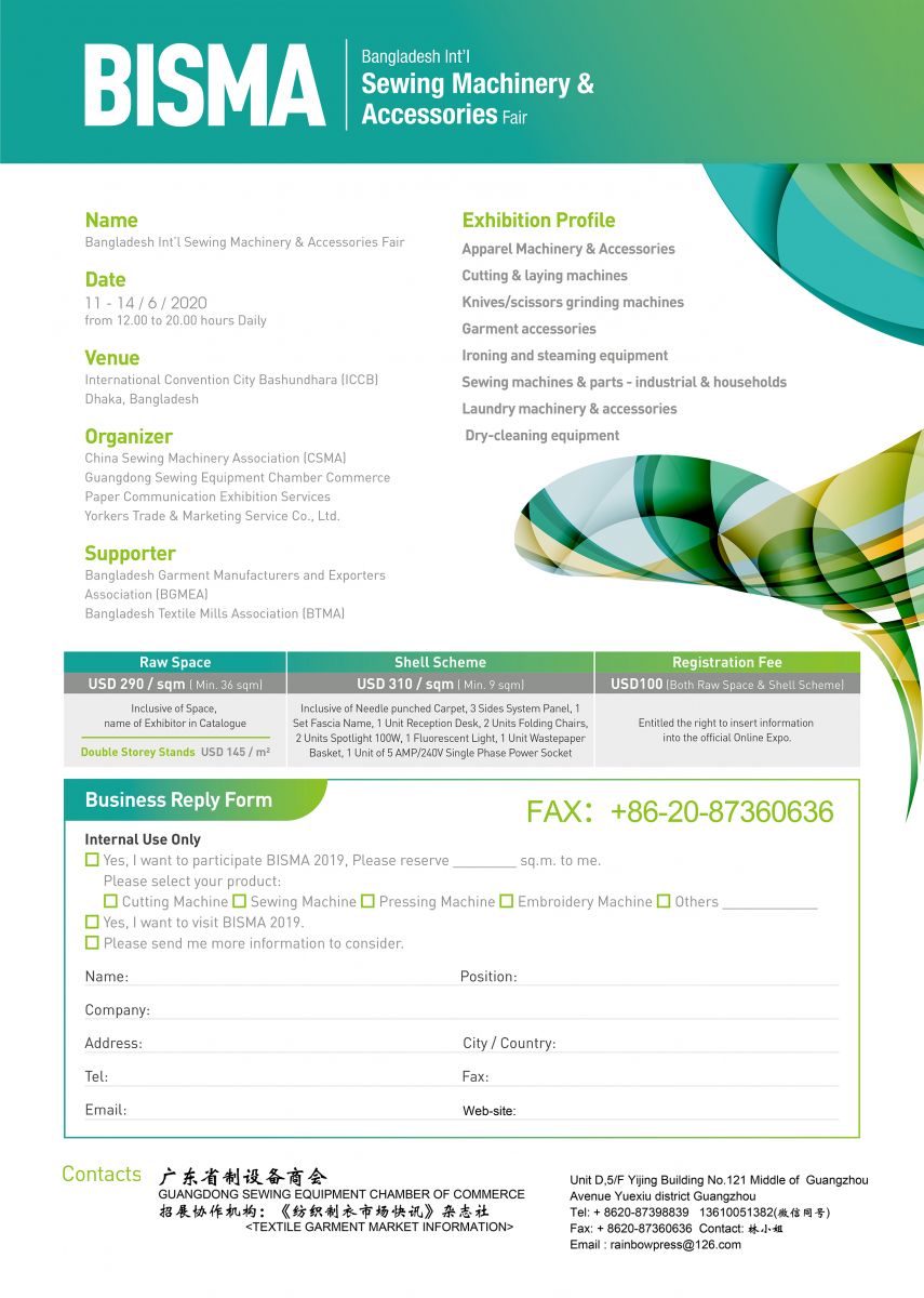 2020年孟加拉國(guó)際縫制設(shè)備展 BISMA
