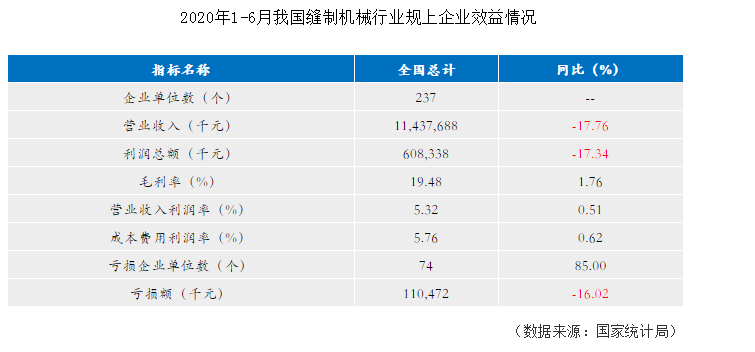 效益:據(jù)統(tǒng)計(jì)局?jǐn)?shù)據(jù)顯示:1-6月,行業(yè)237家規(guī)模以上生產(chǎn)企業(yè)累計(jì)營(yíng)業(yè)收入114.38億元,同比下降17.76%,降幅較一季度收窄8.6個(gè)百分點(diǎn)。6月當(dāng)月,規(guī)上企業(yè)營(yíng)業(yè)收入環(huán)比增加21.52%;規(guī)上企業(yè)累計(jì)實(shí)現(xiàn)利潤(rùn)總額6.08億元,同比下降17.34%,降幅較一季度大幅收窄46.8個(gè)百分點(diǎn);毛利率19.48%,同比增長(zhǎng)1.76%;營(yíng)業(yè)收入利潤(rùn)率5.32%,同比增長(zhǎng)0.51%。