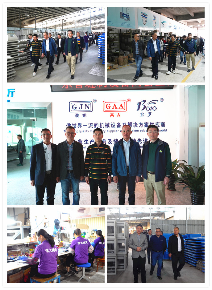 第一站來(lái)到了肇慶市博大機(jī)電設(shè)備有限公司,在博大公司總經(jīng)理關(guān)錦南的陪同下,大家參觀了生產(chǎn)車間,辦公大樓。關(guān)總向大家介紹公司的發(fā)展歷史,以及博大公司旗下的“裝妮”牌服裝機(jī)械的相關(guān)產(chǎn)品情況。博大公司目前的產(chǎn)品結(jié)構(gòu)非常豐富,主要引進(jìn)的是意大利服裝生產(chǎn)技術(shù),產(chǎn)品的質(zhì)量和技術(shù)仍在快速更新迭代。博大公司是一間中外合作企業(yè),專業(yè)從事服裝機(jī)械生產(chǎn)、銷售。主要產(chǎn)品有:驗(yàn)布機(jī)、面料預(yù)縮定型機(jī)、拉布機(jī)、自動(dòng)卷布機(jī)、松布機(jī)、切捆條機(jī)等等。