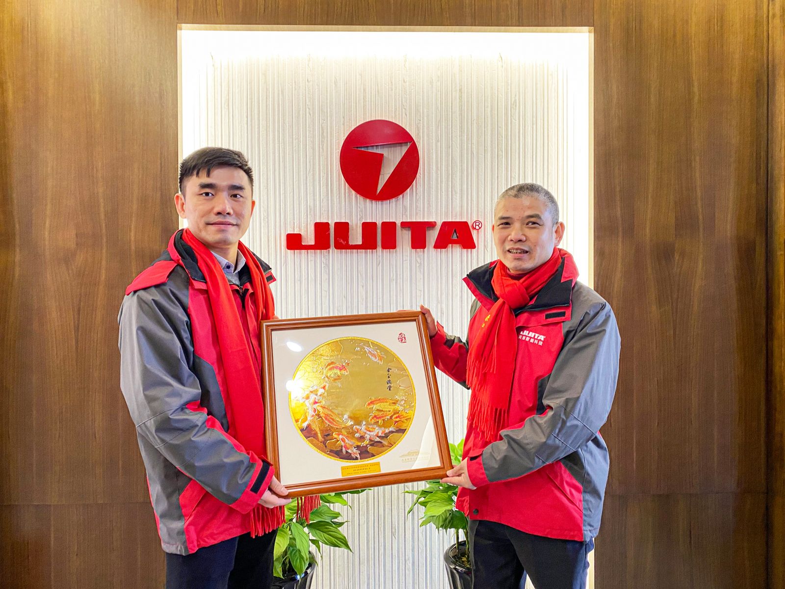 廣東省縫制設(shè)備商會(huì)向川田贈(zèng)送紀(jì)念品,祝賀川田公司新廠房,落成步入新的發(fā)展臺(tái)階!