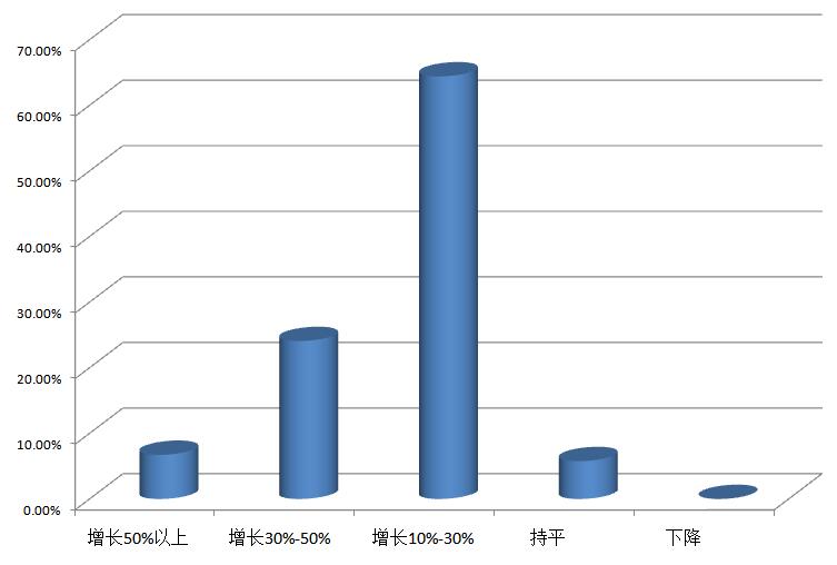 本次調(diào)研的數(shù)據(jù)顯示,采購(gòu)主要原材料或產(chǎn)品的價(jià)格增長(zhǎng)明顯,有6.73%的企業(yè)表示增長(zhǎng)超過(guò)了50%以上。24.08%的企業(yè)表示原材料價(jià)格增長(zhǎng)幅度在30%-50%,64.42%的企業(yè)表示增長(zhǎng)幅度在10%-30%,具體情況請(qǐng)看下列圖表: