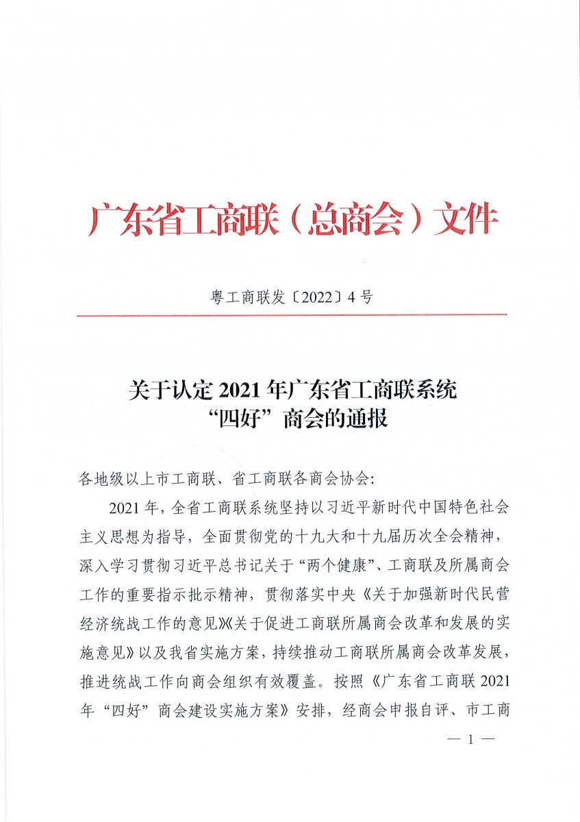 近日,廣東省工商聯(lián)(總商會)發(fā)布《關于認定2021年廣東省工商聯(lián)系統(tǒng)“四好”商會的通報》,廣東省縫制設備商會被認定為“四好”商會組織。
