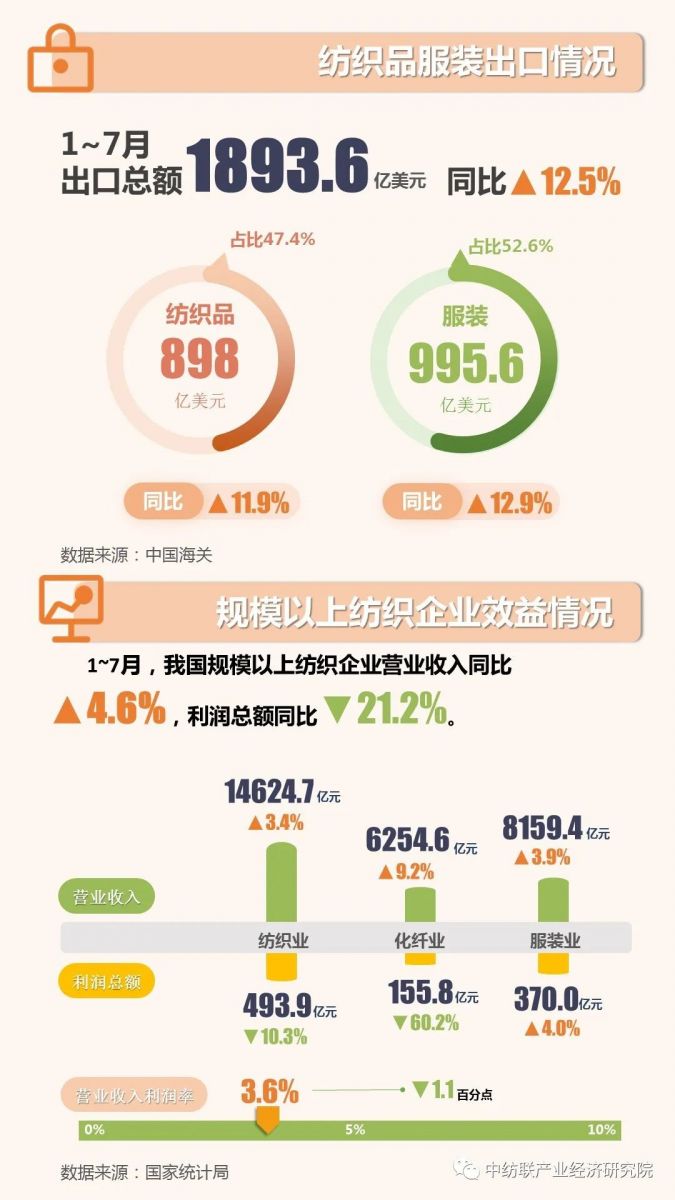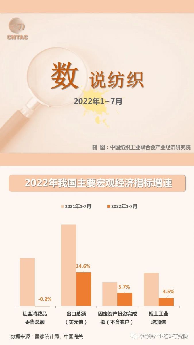 > “數(shù)”說紡織:2022年1~7月紡織品服裝出口總額同比增長12.5%