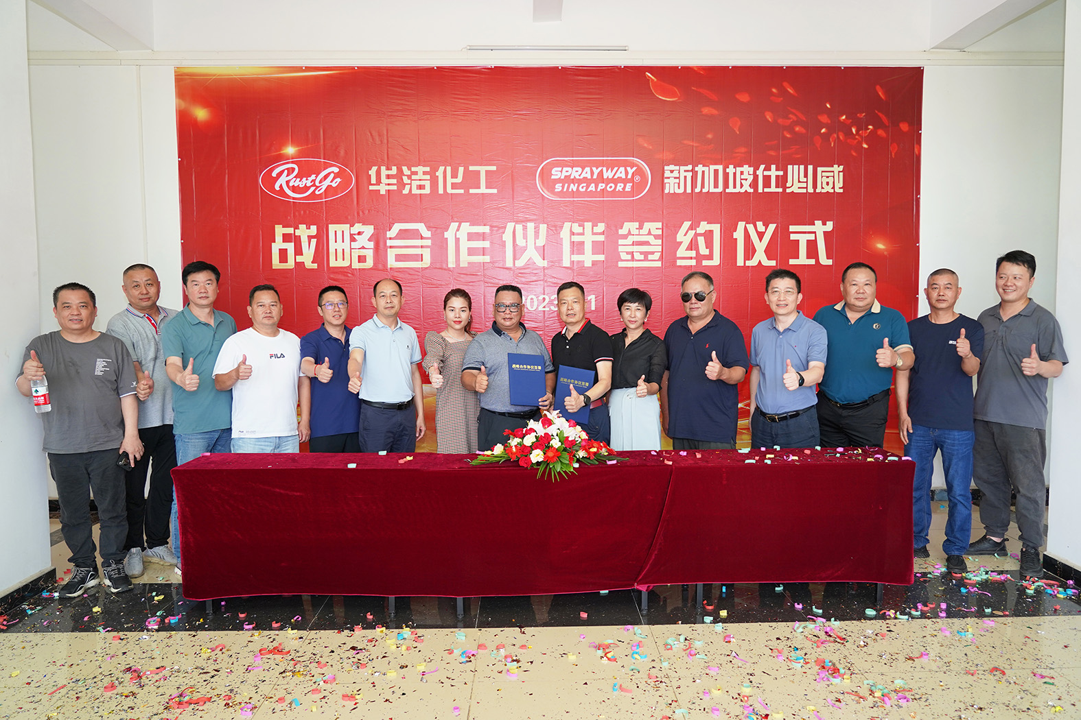 6月1日,華潔化工公司與新加坡仕必威公司戰(zhàn)略合作伙伴簽約儀式在華潔新豐公司隆重舉行。商會(huì)常務(wù)副會(huì)長(zhǎng)邵力世受邀出席本次合作簽約儀式并致辭。