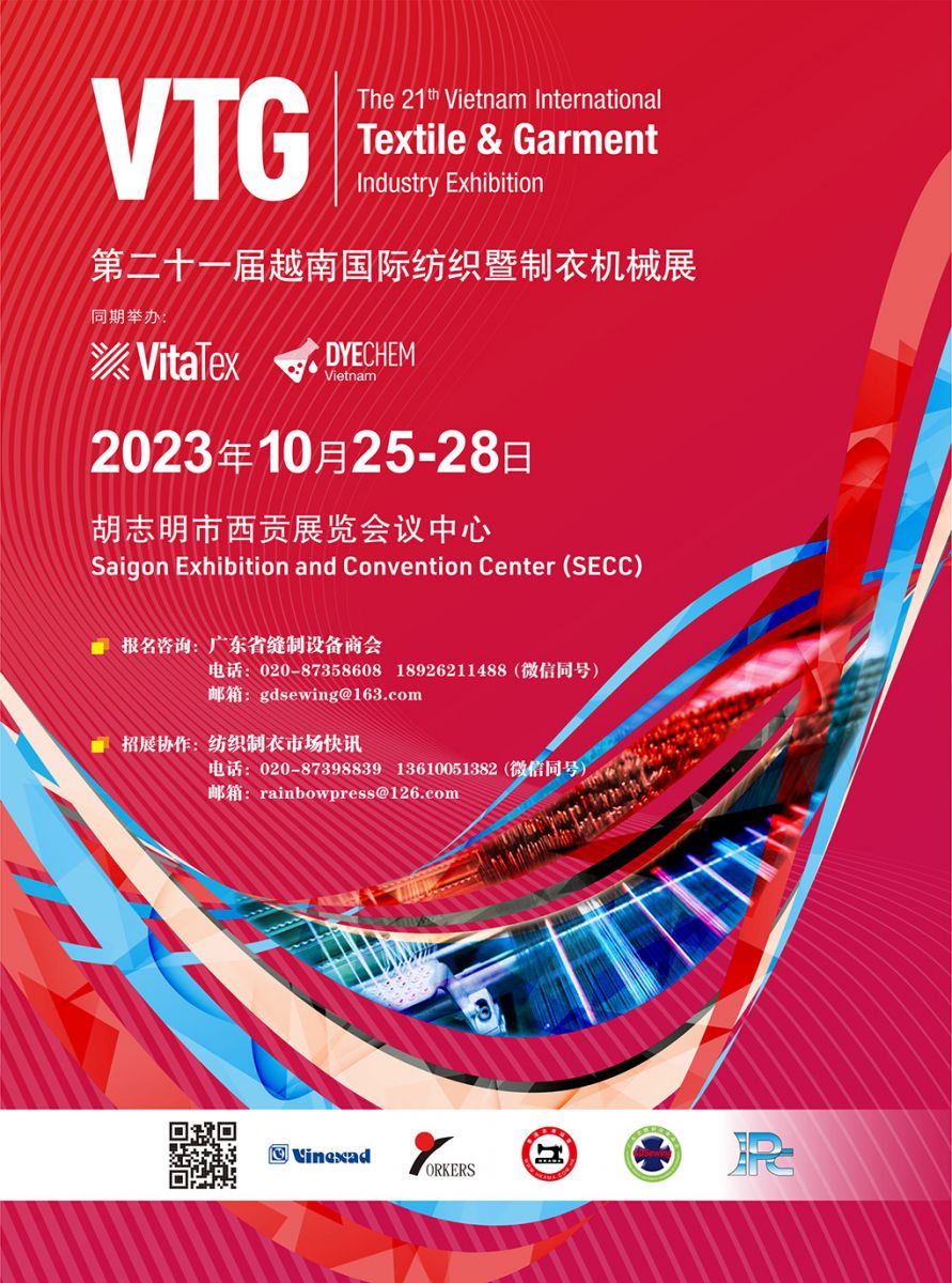 臺灣展昭公司、香港訊通公司、廣東省縫制設(shè)備商會聯(lián)合主辦的“第二十一屆越南國際紡織暨制衣機(jī)械展VTG”將于2023年10月25-28日在胡志明市西貢展覽會議中心(SECC)舉行。廣東省縫制設(shè)備商會將積極組織國內(nèi)行業(yè)企業(yè)參展,并為各企業(yè)提供相關(guān)展會服務(wù)。