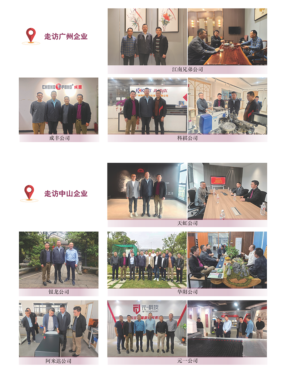 為摸底開(kāi)年后廣東縫制設(shè)備企業(yè)產(chǎn)銷及下游產(chǎn)業(yè)發(fā)展變化情況,3月16日至19日,中國(guó)縫制機(jī)械協(xié)會(huì)理事長(zhǎng)楊曉京一行赴廣東調(diào)研,先后走訪了廣州、中山、東莞、深圳等地縫制企業(yè)。在廣州江南兄弟、科祺、成豐,中山天虹、華陽(yáng)、元一、銀龍、阿米達(dá),東莞祥興、藝博達(dá)、大族粵銘、德舜、日升、愛(ài)瑪、金悅來(lái)、上億,深圳大潔王、雅諾、德業(yè)等企業(yè)實(shí)地考察調(diào)研。廣東省縫制設(shè)備商會(huì)常務(wù)副會(huì)長(zhǎng)邵力世陪同調(diào)研。