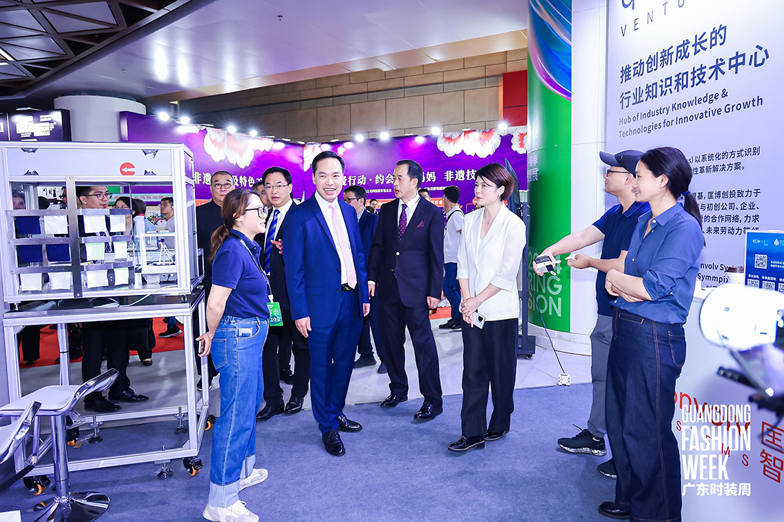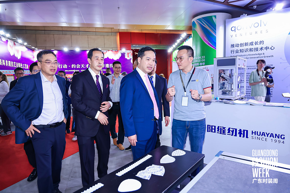 商會常務(wù)副會長單位中山市華陽縫紉機有限公司、副會長單位廣東匡敦科技有限公司在本次活動上展示智能化、數(shù)字化制衣設(shè)備,多元“新”內(nèi)容,以更專業(yè)的視角,滿足大眾對時尚和科技的深層想象。
