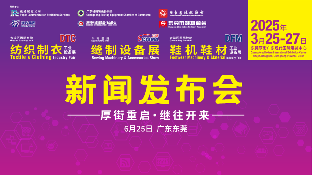 夏山如碧,荷風(fēng)送香,隨著季節(jié)的更迭,我們迎來了一年中最為熱情的時(shí)光。6月25 日,“2025大灣區(qū)國際智能紡織制衣工業(yè)設(shè)備展暨華南國際縫制設(shè)備展/大灣區(qū)國際智能鞋機(jī)鞋材工業(yè)設(shè)備展(以下簡稱2025年大灣區(qū)制衣制鞋/縫制設(shè)備展)新聞發(fā)布會(huì)及晚宴”在東莞厚街嘉華大酒店隆重舉行。發(fā)布會(huì)正式宣布2025年大灣區(qū)制衣制鞋/縫制設(shè)備展將于2025年3月25-27日在東莞厚街-廣東現(xiàn)代國際展覽中心舉辦。本次展會(huì)由訊通展覽公司、廣東省縫制設(shè)備商會(huì)、廣東省鞋機(jī)協(xié)會(huì)聯(lián)合主辦,海名國際會(huì)展集團(tuán)、深圳市縫制設(shè)備行業(yè)協(xié)會(huì)聯(lián)合組織。