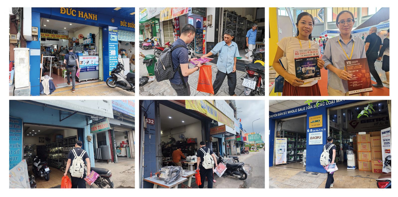 為了解越南當?shù)厥袌鲆约吧舷掠纹髽I(yè)與國際市場的經(jīng)貿(mào)往來情況,商會秘書處外聯(lián)部主任溫志榮、會員部副主任陳圳亮前往越南胡志明,參觀考察4月9-12日舉行SaigonTex2025越南國際紡織及制衣工業(yè)展覽會,并到訪當?shù)乜p制設(shè)備專業(yè)市場。