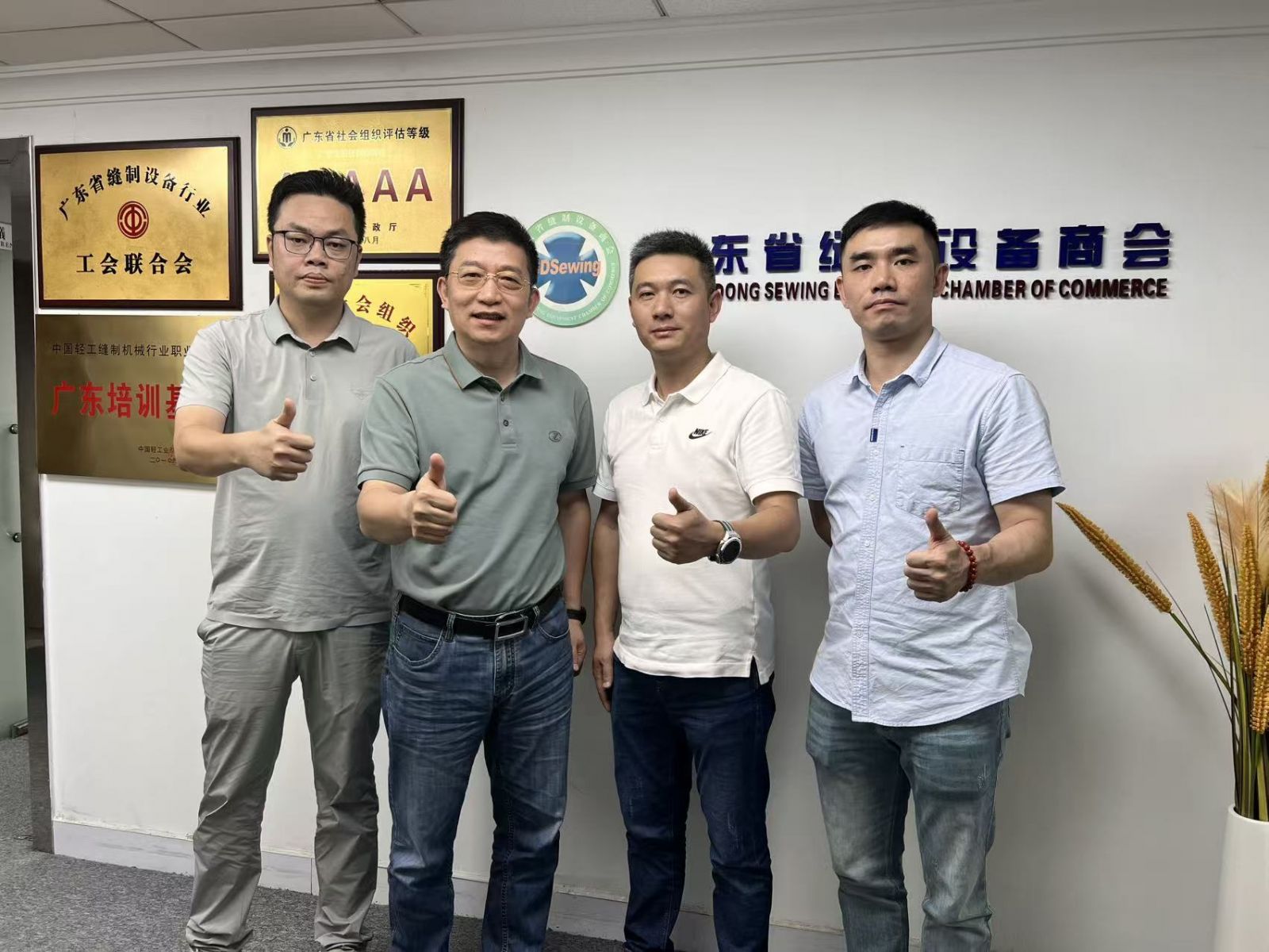 2025年10月15日,廣東省新靂電子科技有限公司銷售總監(jiān)桂星、廣州南天針車行經(jīng)理陳沭輝一行蒞臨廣東省縫制設(shè)備商會(huì)秘書處,商會(huì)常務(wù)副會(huì)長邵力世對(duì)桂星總監(jiān)、陳沭輝經(jīng)理一行的到訪表示歡迎。