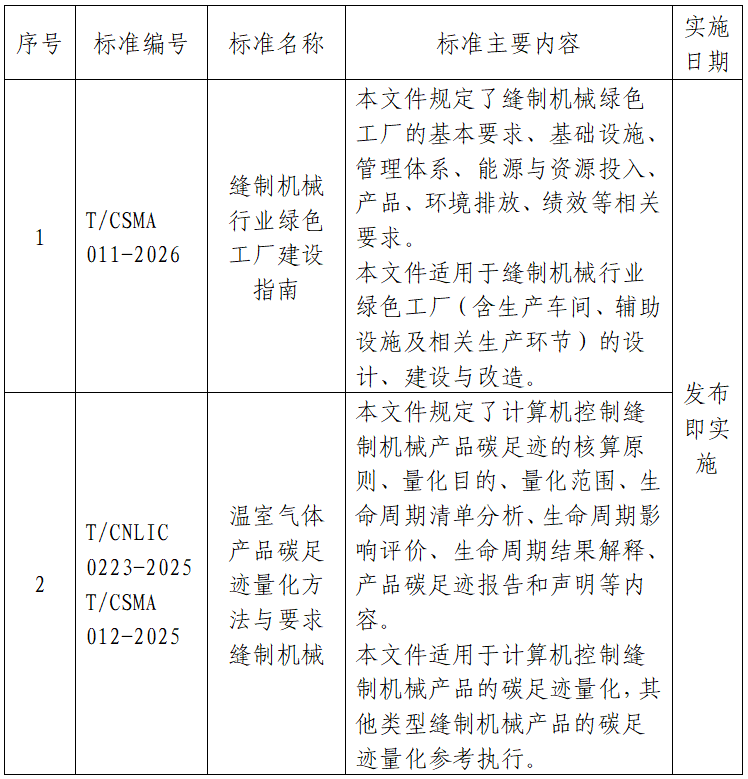兩項(xiàng)標(biāo)準(zhǔn)的發(fā)布實(shí)施,標(biāo)志著縫制機(jī)械行業(yè)在綠色低碳發(fā)展道路上邁出了關(guān)鍵一步,為行業(yè)實(shí)現(xiàn)碳達(dá)峰、碳中和目標(biāo)提供了堅(jiān)實(shí)的技術(shù)支撐與評(píng)價(jià)依據(jù)。下一步,協(xié)會(huì)將積極組織開(kāi)展標(biāo)準(zhǔn)宣貫與培訓(xùn),推動(dòng)標(biāo)準(zhǔn)落地應(yīng)用,助力企業(yè)提升綠色制造水平,加快行業(yè)綠色低碳轉(zhuǎn)型升級(jí)。