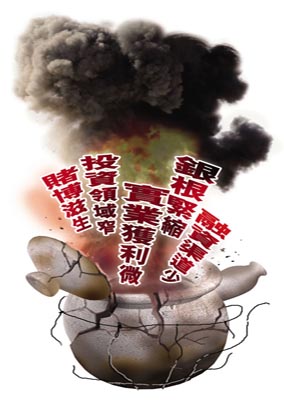 據(jù)了解,銀根緊縮、融資渠道單一、實(shí)業(yè)獲利漸微、投資領(lǐng)域收窄和賭博滋生這五大因素交錯(cuò)釀成溫州民間借貸的瘋狂,更加劇民間借貸泡沫的破滅。