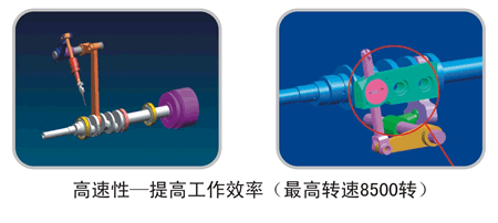798T系列的上輸送齒輸送布料時(shí)則呈直線運(yùn)動(dòng),因此上輸送的有效距離變長,能得到美觀的摺縫。此外,隨著輸送效率的飛躍提高,從而不需要上輸送和下輸送齒間的咬合,而采用新菱形輸送齒,解決配合輸送齒傷痕,提高輸送齒本身的耐久性。
