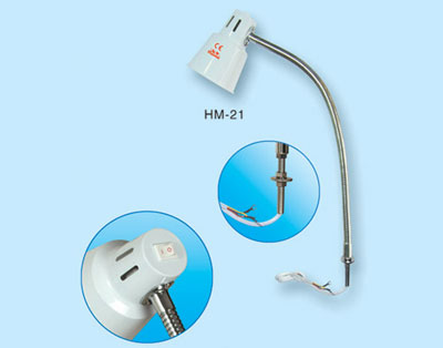 型號:HM-21 功率:5W~20W 電壓:220V(110V) 接線端:電機(jī)開關(guān) 用途:任何衣車和其它照明 附注: 螺口燈泡或節(jié)能燈; 燈夾座可夾臺(tái)板厚度為10mm-50mm; 電源線長度為 1000mm