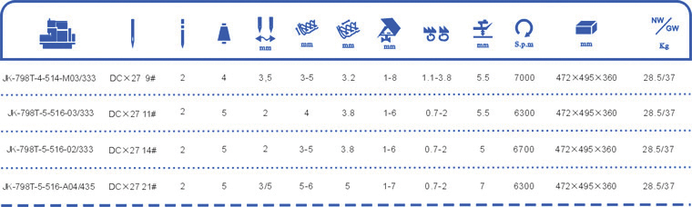 798T系列的上輸送齒輸送布料時(shí)則呈直線運(yùn)動(dòng),因此上輸送的有效距離變長,能得到美觀的摺縫。此外,隨著輸送效率的飛躍提高,從而不需要上輸送和下輸送齒間的咬合,而采用新菱形輸送齒,解決配合輸送齒傷痕,提高輸送齒本身的耐久性。