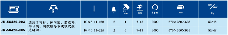 JK-58420是一款雙針平縫機,該產(chǎn)品主要是適用于襯衫、休閑裝、茄克襯、牛仔裝、羽絨服等雙線鎖式線跡縫紉。