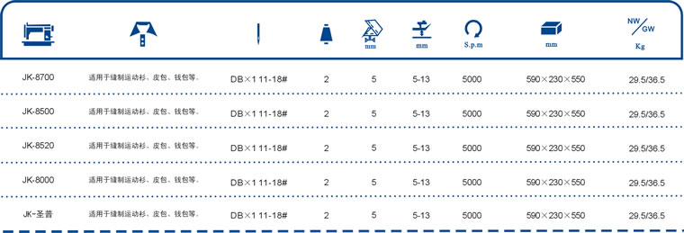 熱門產(chǎn)品: JK-797超高速小頭包縫機(jī)   JK-798T 超高速包縫機(jī)   JK-安可信/798超高速包縫機(jī)   JK-796超高速包縫機(jī)   JK-788超高速包縫機(jī)