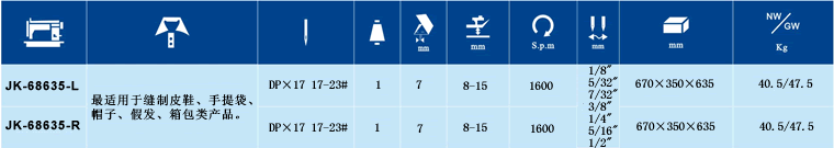 本機采用綜合送料方式和超高立柱式縫臺。根據(jù)縫制品的需要, 分為左縫臺(L)右縫臺(R)?p臺采用特殊設計的針板,適 用于縫制大型立體及小曲度的物品。針距調(diào)節(jié),倒縫操作輕松 簡便,縫紉順暢自如,線跡穩(wěn)定美觀。最適用于縫制皮靴、手 提袋、帽子、假發(fā)、箱包類產(chǎn)品。