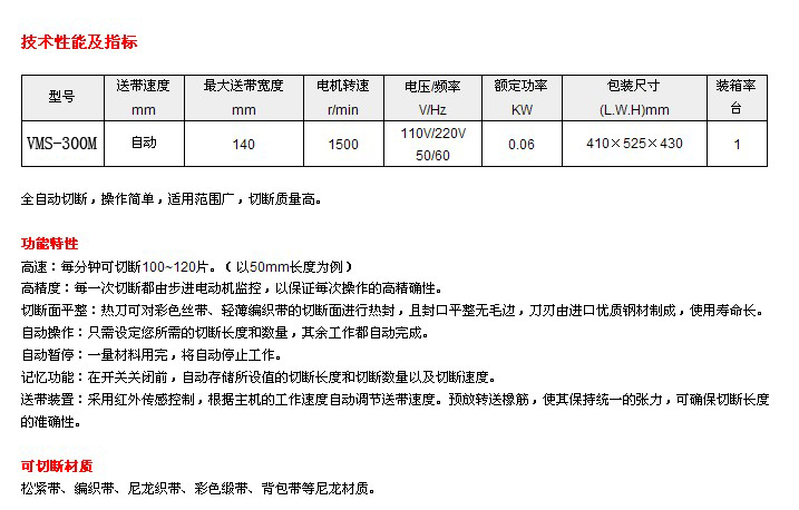 電120H300M熱刀配送帶