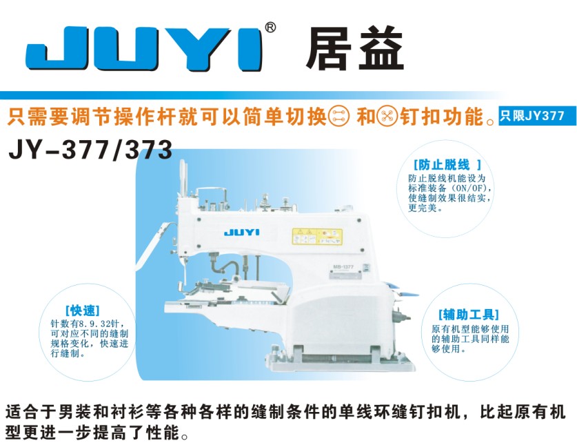 熱門產(chǎn)品: JY-9820 電腦圓頭鎖眼機(jī)   JY-206 斷布機(jī)   JY-627 裁剪機(jī)   JY-2280/2284 人字車(曲折縫縫紉機(jī))   JY-981 電腦圓頭鎖眼機(jī)