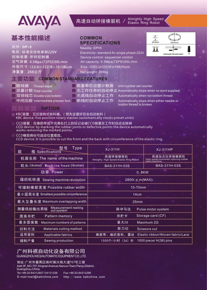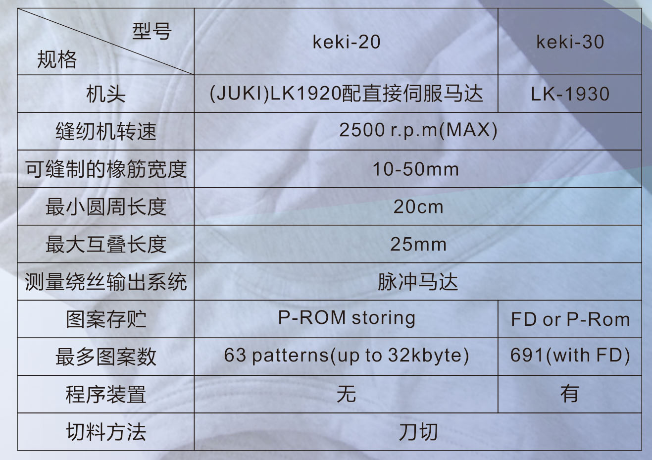 適用于多種面料,如橡皮筋、編織面料、蕾絲面料等。1000個(gè)/小時(shí),36針。