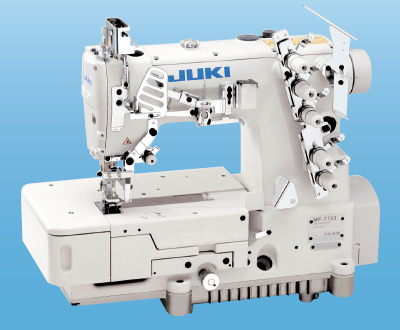 是同一臺能廣泛用于圓領(lǐng)衫袖口,下擺縫,運動杉,針織制品的蓋縫等多種工序的高速箱式裝飾縫縫紉機。