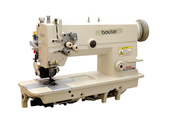該機(jī)型可裝上膠輪部件或者鐵輪部件,可縫制厚料和薄料,同樣具備了普通雙針縫紉機(jī)的特性和用途,底盤可有兩種選擇:普通底盤和高底盤。