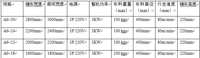1. 變頻控制:采用先進(jìn)的變頻控制系統(tǒng),讓機(jī)器可以靈活地執(zhí)行計算機(jī)指令。 2. 液晶觸控:以人機(jī)對話方式進(jìn)行各種功能設(shè)置,讓全機(jī)實現(xiàn)人性化智能操作。 3. 自動對邊:采用紅外線自動對邊,精確對齊使兩邊布料更加節(jié)省。 4. 開幅調(diào)節(jié):通過簡單操作,即可變換針織與梭織鋪布,8檔位簡單調(diào)節(jié),即可調(diào)節(jié)橫向張力,真正實現(xiàn)針織面料無皺紋鋪布。 5. 張力調(diào)節(jié):通過布斗裝置及光電開關(guān)自動調(diào)節(jié)布料縱向張力 6. 數(shù)據(jù)預(yù)設(shè):可同時預(yù)設(shè)多種拉布長度和層數(shù),讓操作更加智能化。 7. 智能裁斷:智能裁斷裝置可根據(jù)門幅設(shè)定切刀裁斷寬度,提高效率。 8. 數(shù)據(jù)記憶:即使緊急或意外斷電,數(shù)據(jù)也能被保存。 9. 靜音裁切:機(jī)頭采用進(jìn)口靜音滑塊,讓運行更平穩(wěn)更順暢,通過簡單拆裝即可雙向鋪布。