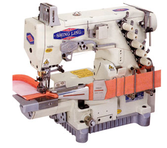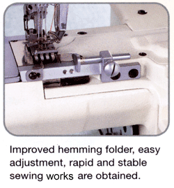 The model is our newly -developed type so called 3 in 1 - Stitch Covering, Hemming and Tape Binding combined in one machine to achieve labor cost combined in one machine to achieve labor cost saving, high quality sewing work and high productivity. (Patent No. 177529)