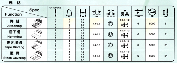 • 氣動式之褲頭松緊帶成形導(dǎo)模及擴(kuò)張滾輪組,可將針織褲頭松緊帶車縫上褲身。