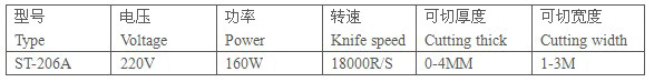 本機特點 電機延時通電:長軌道切布時保持刀片高轉(zhuǎn)速 超高轉(zhuǎn)速:高轉(zhuǎn)速進(jìn)口刀片,快速整齊切斷布料 數(shù)字顯示計層:超炫數(shù)字顯示計層 人體工程學(xué)手柄:獨特設(shè)計人性化手柄,增加手感舒適度 結(jié)實耐用:整體結(jié)構(gòu)優(yōu)化,延長使用壽命 主要技術(shù)參數(shù):