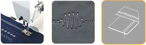 該機(jī)適用于服裝、鞋帽、皮件、箱包等行業(yè)的薄、中厚料曲折縫、拼縫、裝飾縫、線跡美觀,操作靈活。