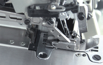 空氣吸入口設(shè)置于壓腳后側(cè),利用空氣吸力將鎖縫線頭、寬幅縫線頭,二重環(huán)縫的鎖縫紉頭吸入后并切線。 |
