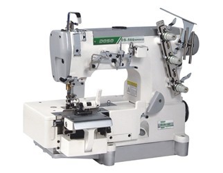 該機型擁有左右兩把切刀裝置,有前后兩只送布牙及壓腳,先進(jìn)行切料后進(jìn)入圈具(龍頭)縫制成條狀三線線跡褲帶環(huán)。適用于西褲、牛仔褲帶環(huán)的縫制用。
