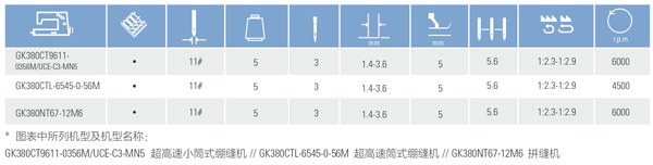 GK380系列超高速繃縫機(jī) 本機(jī)型系方筒式繃縫機(jī)基本機(jī)種,可加裝多種附件以適用于不同作業(yè);本機(jī)型標(biāo)準(zhǔn)配件中附有一般下擺車(chē)縫導(dǎo)模,可適用于一般下擺車(chē)縫作業(yè)。