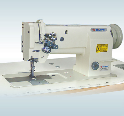SF20606 雙針平縫機采用雙直針、雙立式大型自動加油旋梭勾線,滑竿挑線、構(gòu)成而行雙線鎖式線跡。上下軸用滾珠軸承支承,同步齒形帶傳動;柱塞式油泵潤滑系統(tǒng),采用了松料牙、針桿、壓腳等互相諧和送料的綜合性送料機構(gòu),故即使線跡較粗者及較長的縫料的縫制,也能正確自如地進行。