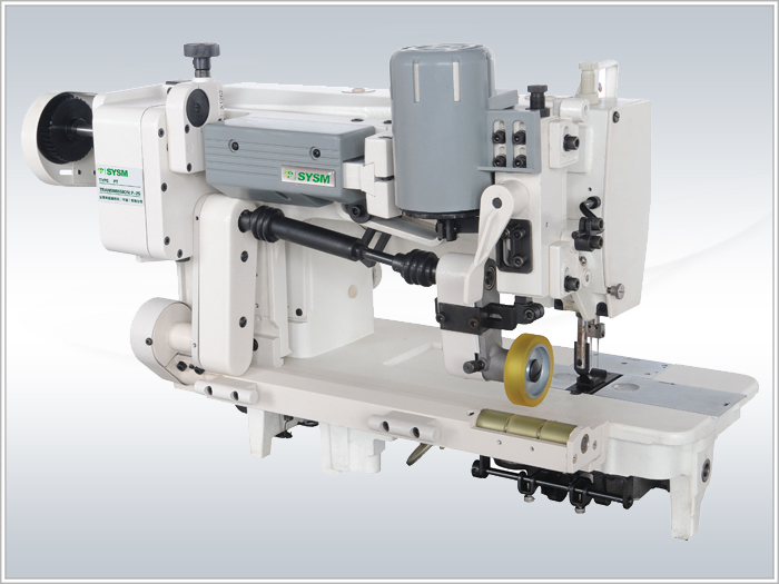 上下滾輪驅(qū)動,長距離直線縫制,防止面料皺褶,適用于原料強(qiáng)力拖動,省力,效率高,確保面料與原料同步縫制,機(jī)型美觀。