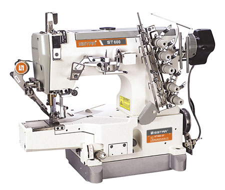 本機(jī)為三針小方頭式機(jī)體,它還備有極為豐富的各種專用機(jī)種,大面料可進(jìn)行輕松縫制,可用來雙面裝飾縫,能滿足高質(zhì)量及多樣化的縫制效果。 ST600-07有自動(dòng)剪線裝置。